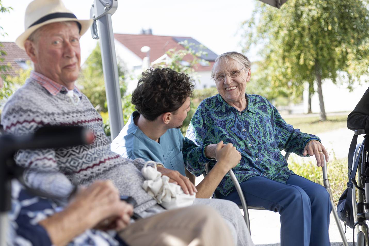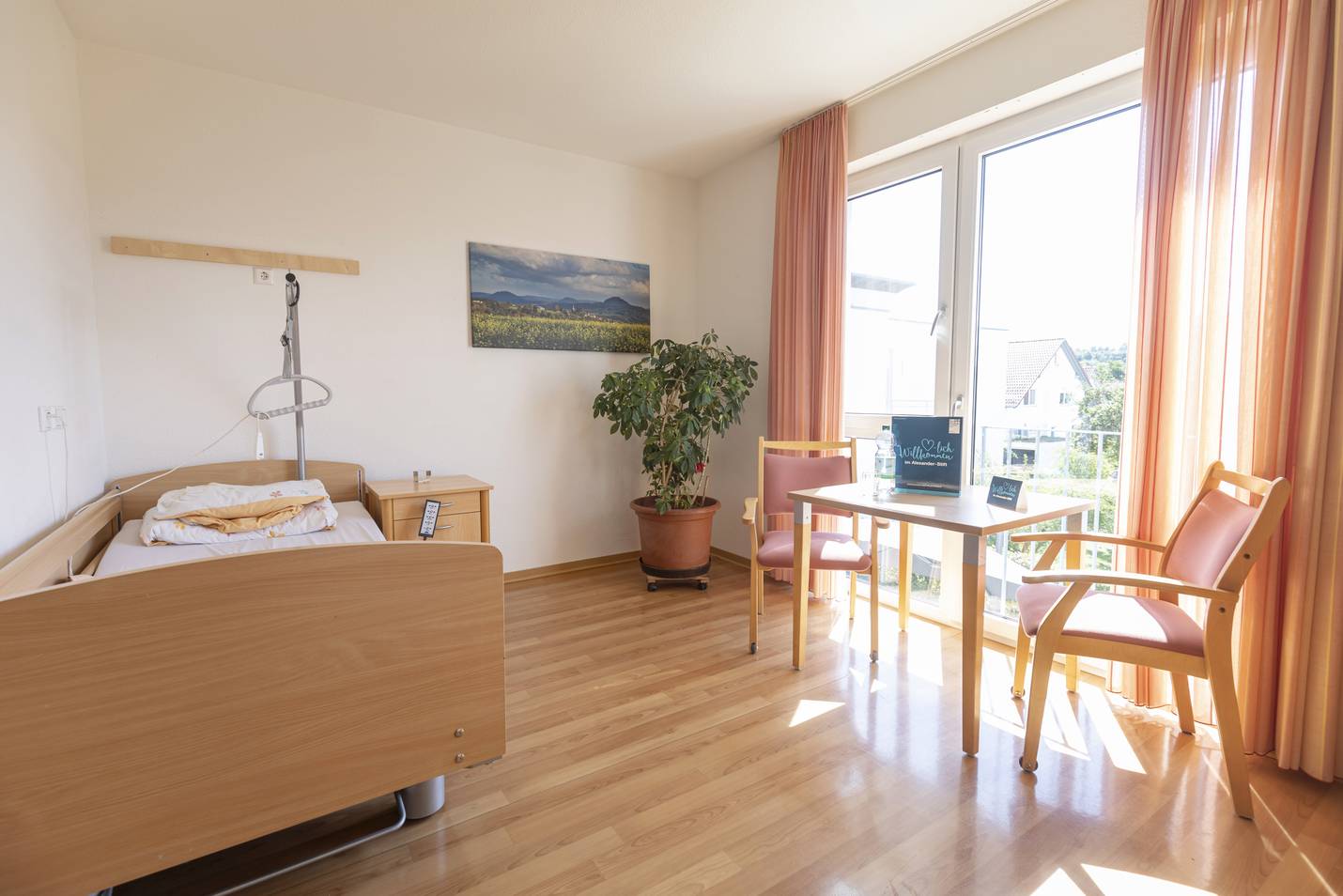 - Zimmerausstattung: Bad, Pflegebett, Nachttisch, Kleiderschrank, TV-Kommode, Tisch und Stühle, Telefon- und Kabel-TV-Anschluss und ein Hausnotruf.
